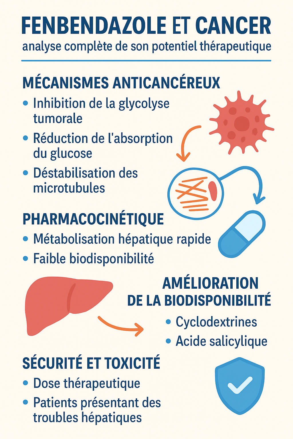 Le fenbendazole se distingue comme une molécule polyvalente, peu coûteuse et dotée de mécanismes anticancéreux bien documentés en laboratoire.