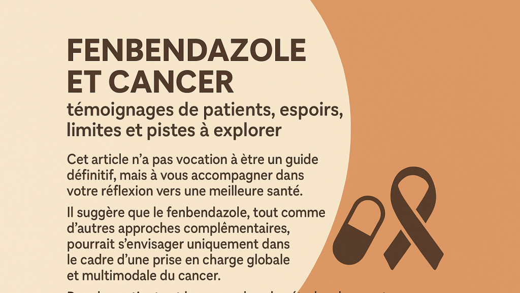 Il suggère que le fenbendazole, tout comme d’autres approches complémentaires, pourrait s’envisager uniquement dans le cadre d’une prise en charge globale et multimodale du cancer, toujours adaptée à chaque situation individuelle.